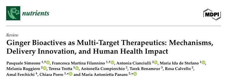 [1] Simeone P, et al. Ginger Bioactives as Multi-Target Therapeutics: Mechanisms, Delivery Innovation, and Human Health Impact. Nutrients, 2026, 18, 1079.
