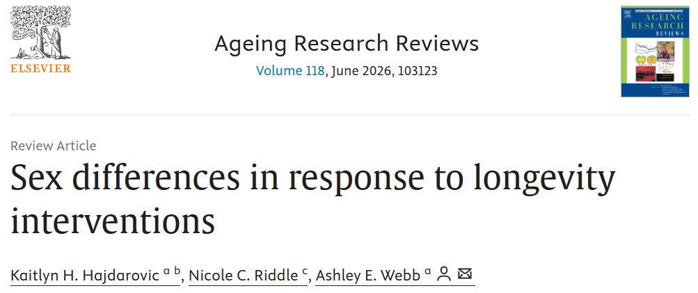 [1] Hajdarovic, K. H., Riddle, N. C. & Webb, A. E. Sex differences in response to longevity interventions. Ageing Research Reviews 118, 103123 (2026).