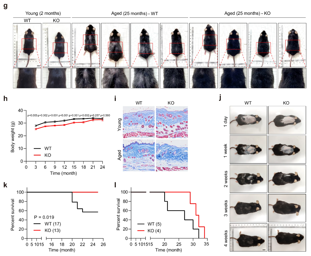 衰老是每个人都要经历的人生课题,有些人选择坦然面对,更多的人则希望找到各种延缓衰老的可能途径。近日,中国医学科学院阜外医院联合广州中医药大学等机构组成的研究团队,就发现了一个新的衰老“加速器”——含犰狳样螺旋结构域蛋白 4(ARMH4)[1]。有趣的点在于,ARMH4蛋白的含量随着衰老而减少,却仍在加速衰老。 这看起来有些反直觉,因为通常我们认为,如果某个东西会加速衰老,那么它应该随着衰老增加才对,但新研究的发现正好相反。这到底是怎么回事呢? 故事要从一个“矛盾”说起: 研究团队在分析健康老年人群的蛋白质组学数据时发现,ARMH4蛋白在老年人血液中含量显著下降。这一现象在小鼠中也得到验证:不仅血浆,在脑、心、肝、肾等多个重要器官中,老年个体的ARMH4水平都远低于年轻个体。也就是说,ARMH4的减少可能是衰老的一个共同特征,那么它究竟是衰老的因还是果? 为了弄清楚这个问题,研究人员利用CRISPR-Cas9技术构建了全身性Armh4敲除(KO)的小鼠。结果显示:KO小鼠在正常喂养条件下,不仅自发性死亡率降低,最大寿命也得到显著延长。 直观表现有:当同龄野生小鼠毛发开始干枯灰白时,KO小鼠的毛发仍保持乌黑亮泽,皮肤的结构老化也明显减轻;在运动耐力、平衡能力等指标上,年老的KO小鼠也表现得更像年轻小鼠。 这些证据表明,ARMH4的缺失可以主动延缓衰老速度。换言之,ARMH4蛋白本身可能是加速衰老的原因。 衰老的影响遍及全身,ARMH4的作用也是如此。除了上述直观表现,研究团队还在小鼠多个关键器官中观察到了显著的“生理减龄”效果。 · 心脏更年轻:衰老的心脏常伴有心肌肥厚和纤维化。在老年KO小鼠中,心脏重量和心肌细胞肥大程度显著减轻,心肌纤维化也得到缓解。超声心动图显示,其心脏舒张功能更好。 · 肝脏更健康:老年肝脏常见的免疫细胞浸润、纤维化和细胞衰老标记物(如β-半乳糖苷酶活性)升高,在KO小鼠中都大幅减弱;与衰老相关的慢性低度炎症信号也受到抑制。 · 代谢更稳定:虽然KO小鼠在葡萄糖耐受测试中清除糖分速度稍慢,暗示其代谢策略可能发生调整,但它们在应对短期饥饿-再喂养的挑战时,体重波动和食物摄入量都更小,可能具有不同的能量稳态调控模式。 由此可见,ARMH4是一个系统性的促衰老因子,它的缺失能从整体上改善机体的衰老状态,促进健康衰老。 然而,为什么一个随着衰老减少的东西,反而在加速衰老进程呢? 研究人员深入分析了其分子机制,发现ARMH4是一个定位于细胞膜的蛋白,它能与两个关键的生长因子受体——胰岛素样生长因子1受体(IGF1R)和成纤维细胞生长因子受体1(FGFR1)——直接结合,并放大受体接收到生长信号(如IGF1、FGF)后的反应,从而过度激活两条关键营养感知信号通路:PI3K-AKT-mTOR通路和Ras-MEK-ERK通路,前者促进蛋白质合成,后者加速细胞增殖。 简单来说,ARMH4的存在让mTOR信号(包括mTORC1和mTORC2)过度活跃,导致细胞蛋白质合成异常增加,同时抑制了细胞自我清理的关键过程——自噬,也就是“衰老十二大标志”中的蛋白质稳态失衡和细胞自噬失能[2],从而推动衰老进程。 然而,故事的高潮在于,研究人员发现,ARMH4不仅能增强受体下游信号,还能通过激活mTOR信号,促进转录因子c-Myc的翻译活性,而c-Myc的作用则是启动IGF1R和FGFR1本身的基因表达。由此,形成了一个“ARMH4→增强IGF1R/FGFR1信号→激活mTOR→提升c-Myc→增加IGF1R/FGFR1表达→与ARMH4结合进一步放大信号”的正反馈回路,持续推动着蛋白质合成过度和自噬不足,最终驱动细胞和机体走向衰老。 至于ARMH4为什么会随着衰老而减少,研究团队认为,这可能是机体的一种代偿性反应。随着衰老,细胞对生长信号的敏感性可能会增加,所以机体试图通过降低ARMH4水平来“刹车”,但这种自然的下降幅度可能不足以完全抵消衰老进程。 别忘了,ARMH4本来就是在人体血液中被筛选出来的,其随龄下降的特性与小鼠中一致。而且在人工诱导衰老的人体AC16心肌细胞和人类脐静脉内皮细胞(HUVECs)中,降低ARMH4表达后,细胞衰老标志物减少;而过表达ARMH4则加速衰老。这说明,ARMH4在人体内可能也同样起着“衰老引擎”的作用,只是其活性在自然衰老过程中有所减弱,但仍不足以保证我们所期望的“健康长寿”。 不过,研究提示,主动干预ARMH4,可能是比单纯限制生长信号(如使用mTOR抑制剂雷帕霉素)更精准、更具特异性的衰老干预策略,也许在延缓衰老的同时,可以减少对细胞生存必需通路的其他干扰。 尽管将小鼠研究转化为人类疗法还有漫长的路要走,但这项研究却为我们提供了一个新的衰老干预思路:衰老或许并非不可控的磨损,而是由特定分子程序驱动的过程。未来,若能通过药物或其他手段精准调控如ARMH4这样的衰老“加速器”,那么我们延长的可能不仅是生命的长度,更是清醒、有活力、无病痛的健康时光。