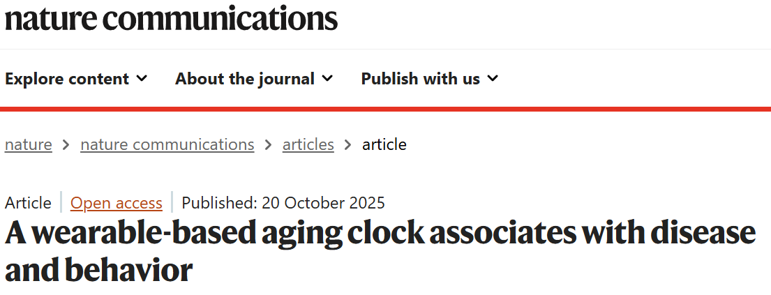 [1]Miller, A. C. et al. A wearable-based aging clock associates with disease and behavior. Nature Communications 16, (2025).