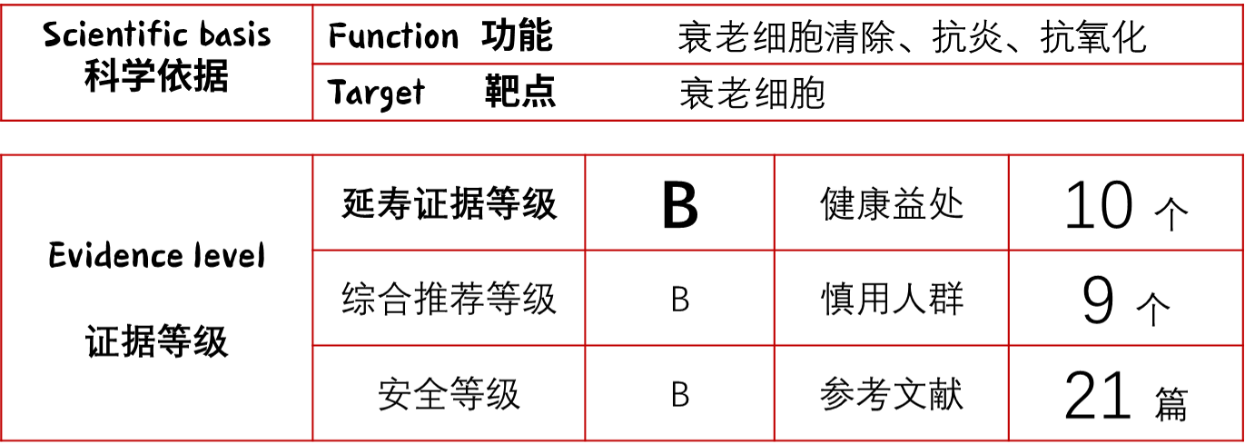 根据长寿之家Changshou.com 制定的《长寿成分评级标准(2025 版)》,槲皮素的延寿证据等级为 B。