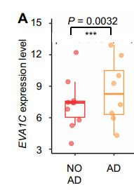 阿尔茨海默病患者与对照组(无AD)间EVA1C的差异表达(参考资料[1])