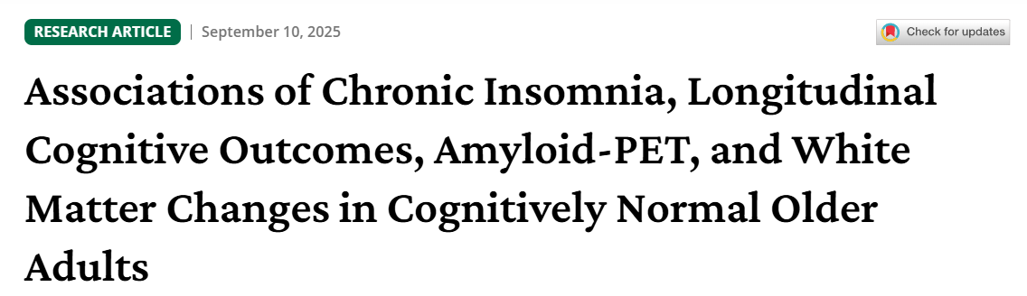 [1]Carvalho, D. Z. et al. Associations of chronic insomnia, longitudinal cognitive outcomes, Amyloid-PET, and white matter changes in cognitively normal older adults. Neurology 105, (2025).