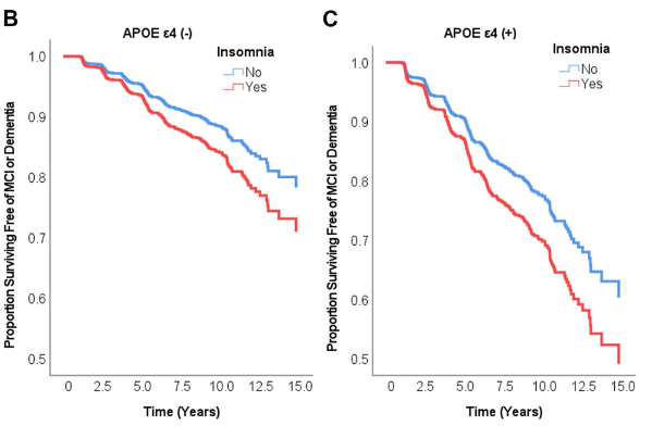 更可怕的是,慢性失眠患者发生认知障碍(包括轻度认知障碍和痴呆)的风险比正常人高出40%。这一风险等级,相当于患有两种以上心血管疾病所带来的认知衰退速度,甚至与携带阿尔茨海默病高风险基因APOE ε4的人群相当。