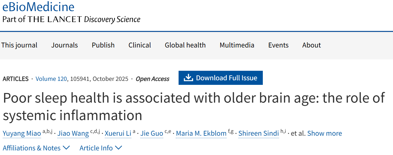 [2]Miao, Y. et al. Poor sleep health is associated with older brain age: the role of systemic inflammation. EBioMedicine 105941 (2025) doi:10.1016/j.ebiom.2025.105941.