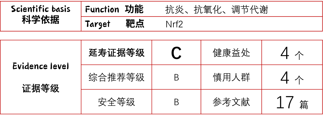 根据长寿之家Changshou.com制定的《长寿成分评级标准(2025版)》,萝卜硫素的延寿证据等级为 C。