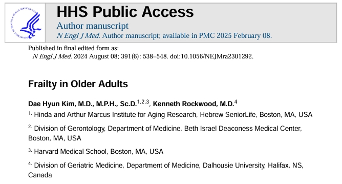 [7] Kim DH, Rockwood K. Frailty in older adults. New England Journal of Medicine. 2024;391(6):538-548.