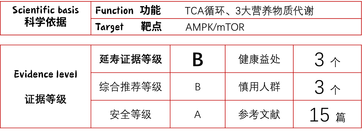 根据长寿之家Changshou.com制定的《长寿成分评级标准(2025版)》,AKG 的延寿证据等级为 B。